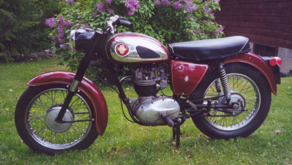 Британский классик на колесах – мотоцикл BSA B 40 1966. Этот надёжный и мощный трёхтактный мотоцикл с наддувом оснащен мощным двигателем объёмом 343 кубических сантиметров, развивая 14,7 кВт (20 л.с.) при 7000 оборотах в минуту. Максимальная скорость составляет 100 км/ч.